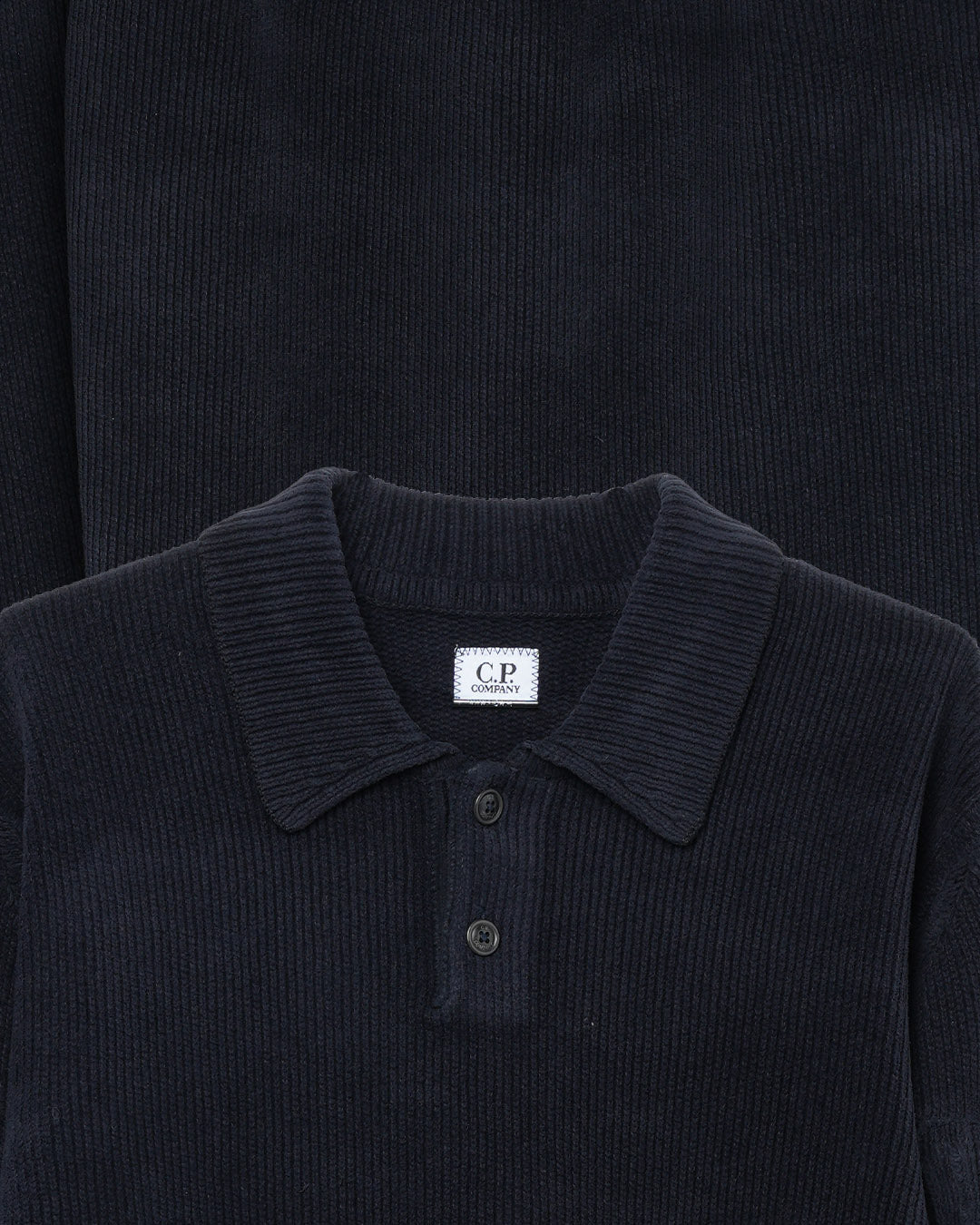 La maglia Knitwear Polo Collar Chenille Cotton Total Eclipse di C.P. Company è un capo dallo stile elegante e contemporaneo, caratterizzato da una silhouette classica con colletto a polo. Realizzata in morbido cotone chenille, offre una texture vellutata e confortevole, ideale per un look casual ma raffinato. Il colore Total Eclipse, un blu scuro profondo, dona un tocco di sobrietà e versatilità, perfetto per completare outfit urbani e sofisticati.