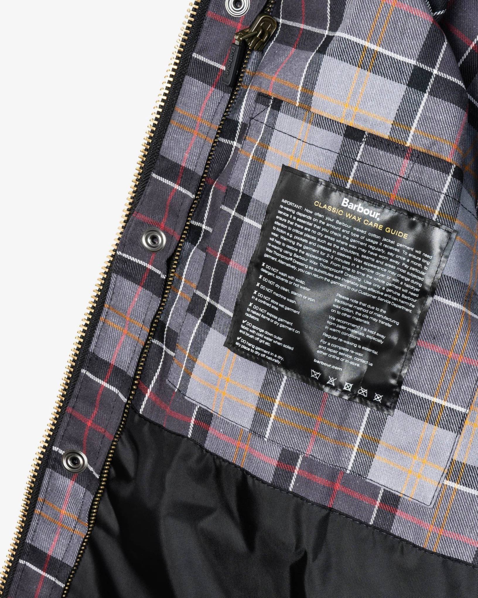 Il design della giacca include una chiusura con zip centrale e patta con bottoni a pressione, che assicura protezione contro vento e pioggia. Le tasche frontali, pratiche e funzionali, sono dotate di bottoni a pressione per mantenere i tuoi effetti personali al sicuro. Il colletto in velluto, morbido e caldo, aggiunge un tocco di comfort e un dettaglio elegante. Inoltre, la fodera interna in tartan, simbolo della tradizione Barbour, conferisce un ulteriore elemento di carattere.