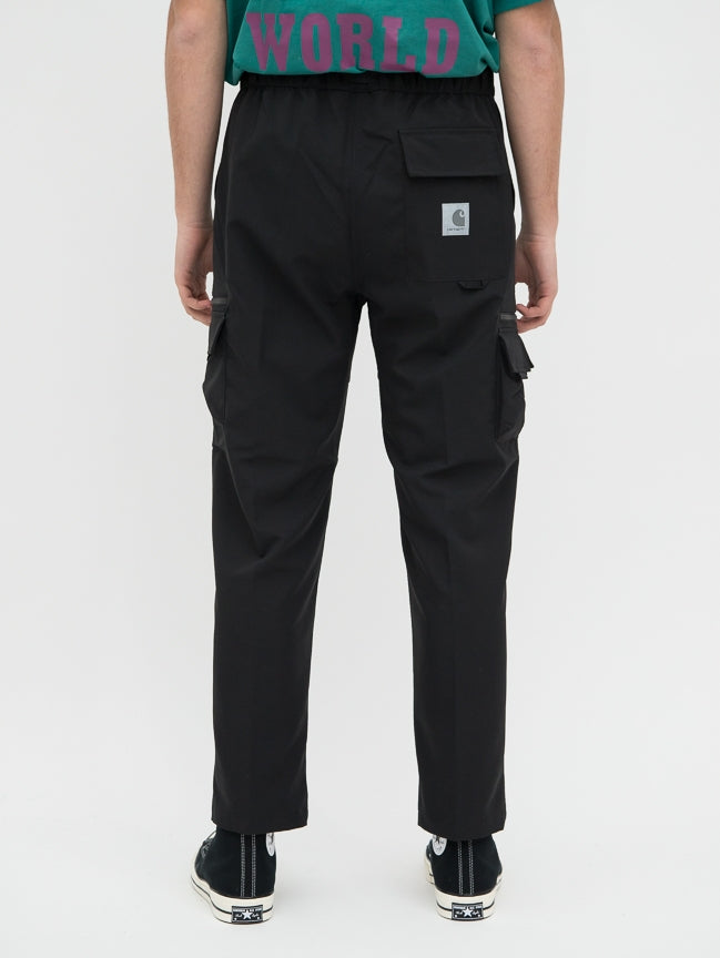 L'Elmwood Pant è un pantalone realizzato in tessuto poliestere Mechanical Stretch. che garantisce impermeabilità e libertà di movimento. Le numerose tasche, con chiusura a zip o in velcro, e bordo inferiore regolabile aggiungono praticità a questo capo. La tasca posteriore è caratterizzata da un'etichetta Carhartt WIP quadrata riflettente. Questo Pantalone presenta cavallo basso e vestibilità rilassata.