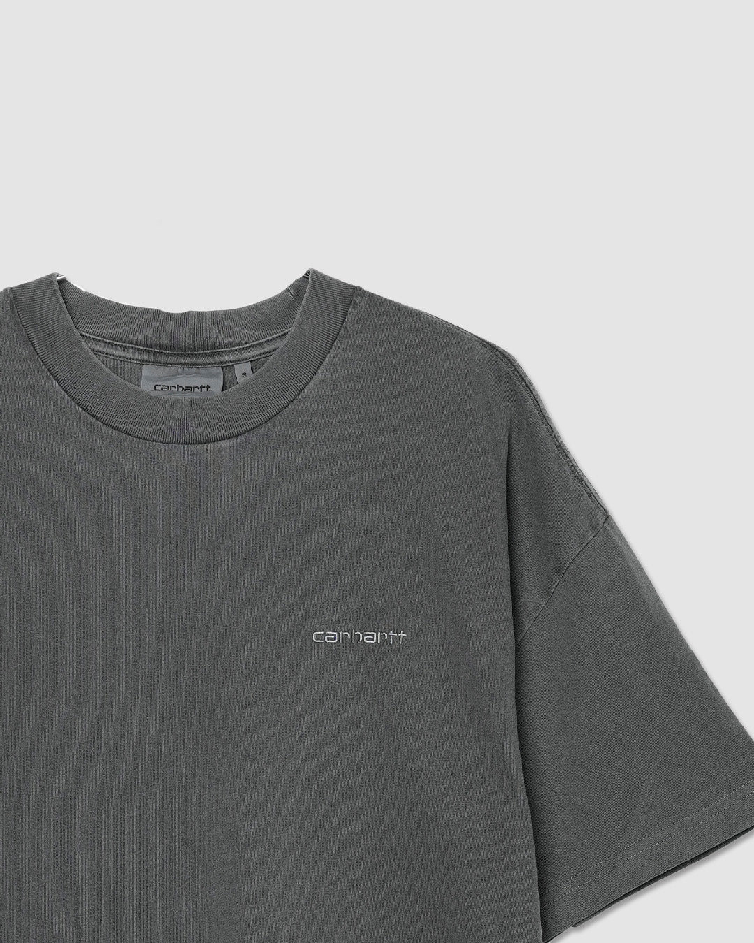 La Benton T-Shirt di Carhartt WIP è un capo essenziale dal carattere autentico, arricchito da un trattamento garment dyed che conferisce al tessuto una colorazione graphite intensa e leggermente irregolare, per un effetto vissuto e unico su ogni pezzo. Realizzata in morbido cotone biologico, questa t-shirt offre una vestibilità regolare e un design minimalista, impreziosito dal discreto logo Carhartt WIP ricamato sul petto. Ideale per chi cerca un look casual e versatile, da indossare tutto l’anno con facilità e stile.