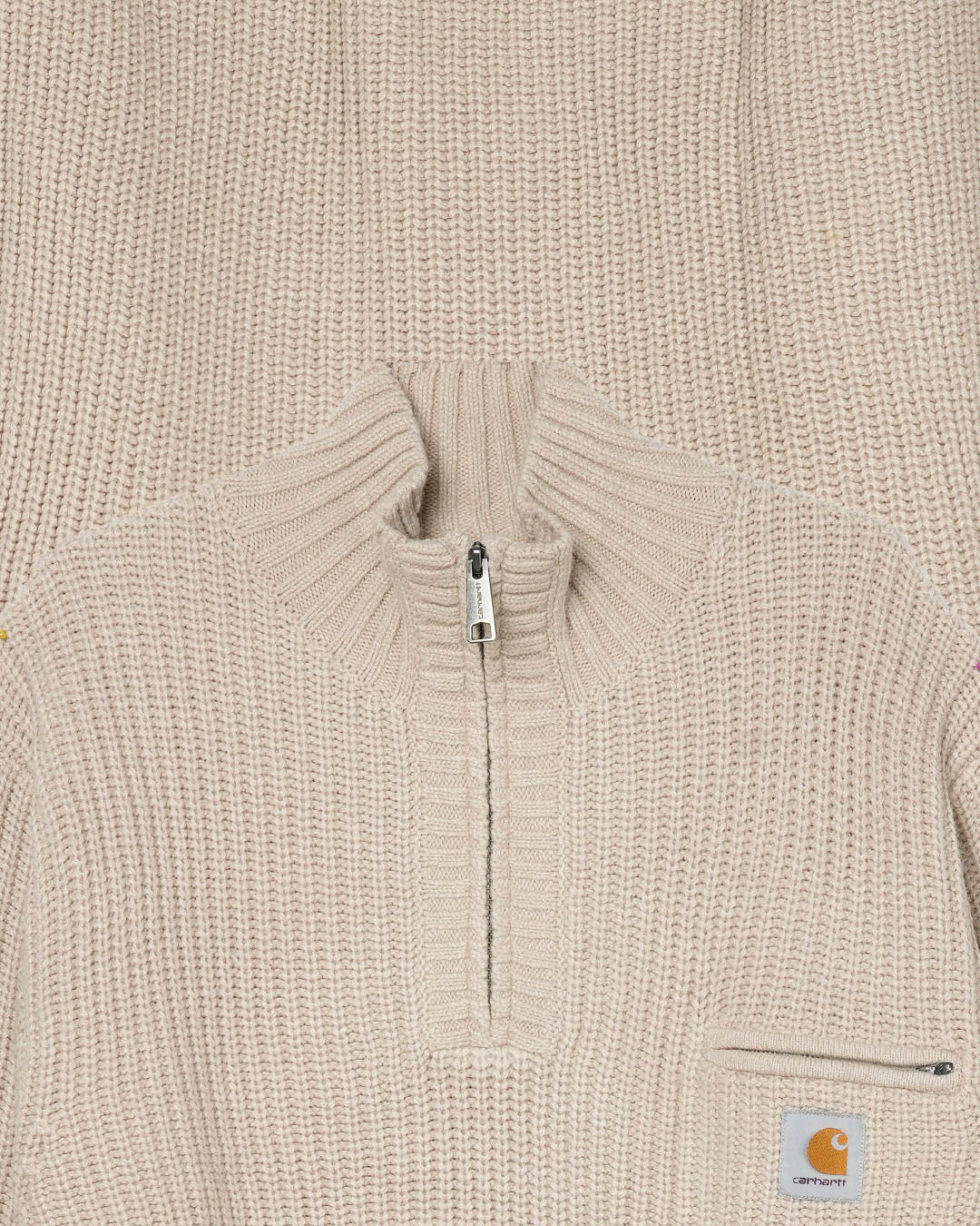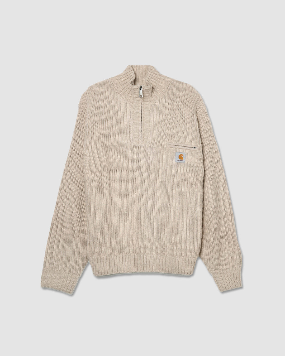 Il Detroit Half Zip Sweater di Carhartt WIP è un capo che unisce l’essenza workwear del brand con un’estetica minimal e contemporanea. Realizzato in morbido misto cotone, questo maglione presenta una silhouette pulita e rilassata, arricchita da una zip a mezza lunghezza che dona carattere e praticità. La tonalità Fleur De Sel, delicata e sofisticata, aggiunge un tocco raffinato al look, rendendolo adatto sia a contesti casual che più curati. Il logo Carhartt ricamato sul petto richiama con discrezione l’identità del marchio, mentre i bordi a costine su polsini e orlo garantiscono una vestibilità confortevole e definita. Un capo versatile e intramontabile, perfetto per le mezze stagioni o da indossare a strati.