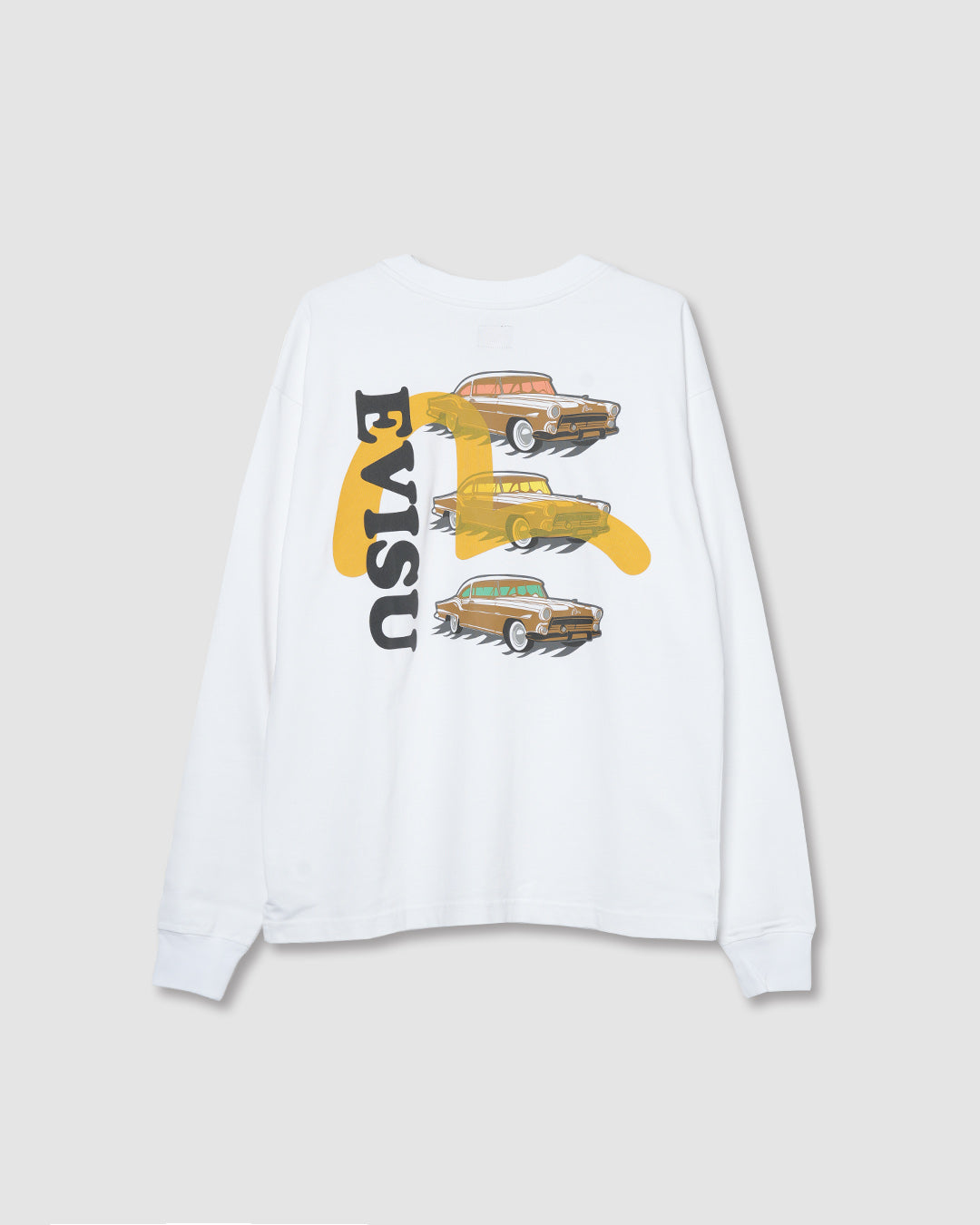 La 50s Cars Long Sleeves Tee di Evisu è un omaggio alla cultura americana degli anni '50, reinterpretata con lo stile audace e riconoscibile del brand giapponese. Realizzata in morbido cotone di alta qualità, questa t-shirt a maniche lunghe si distingue per la stampa rétro sul retro, raffigurante auto d’epoca e grafiche vintage che richiamano il mondo delle corse e dei diner old-school. Sul petto, il logo EVISU aggiunge un tocco iconico e immediatamente riconoscibile. Il taglio regolare e il tessuto leggero assicurano comfort e vestibilità ideali per un uso quotidiano, rendendo questa tee un capo perfetto per chi vuole unire streetwear, nostalgia e personalità.
