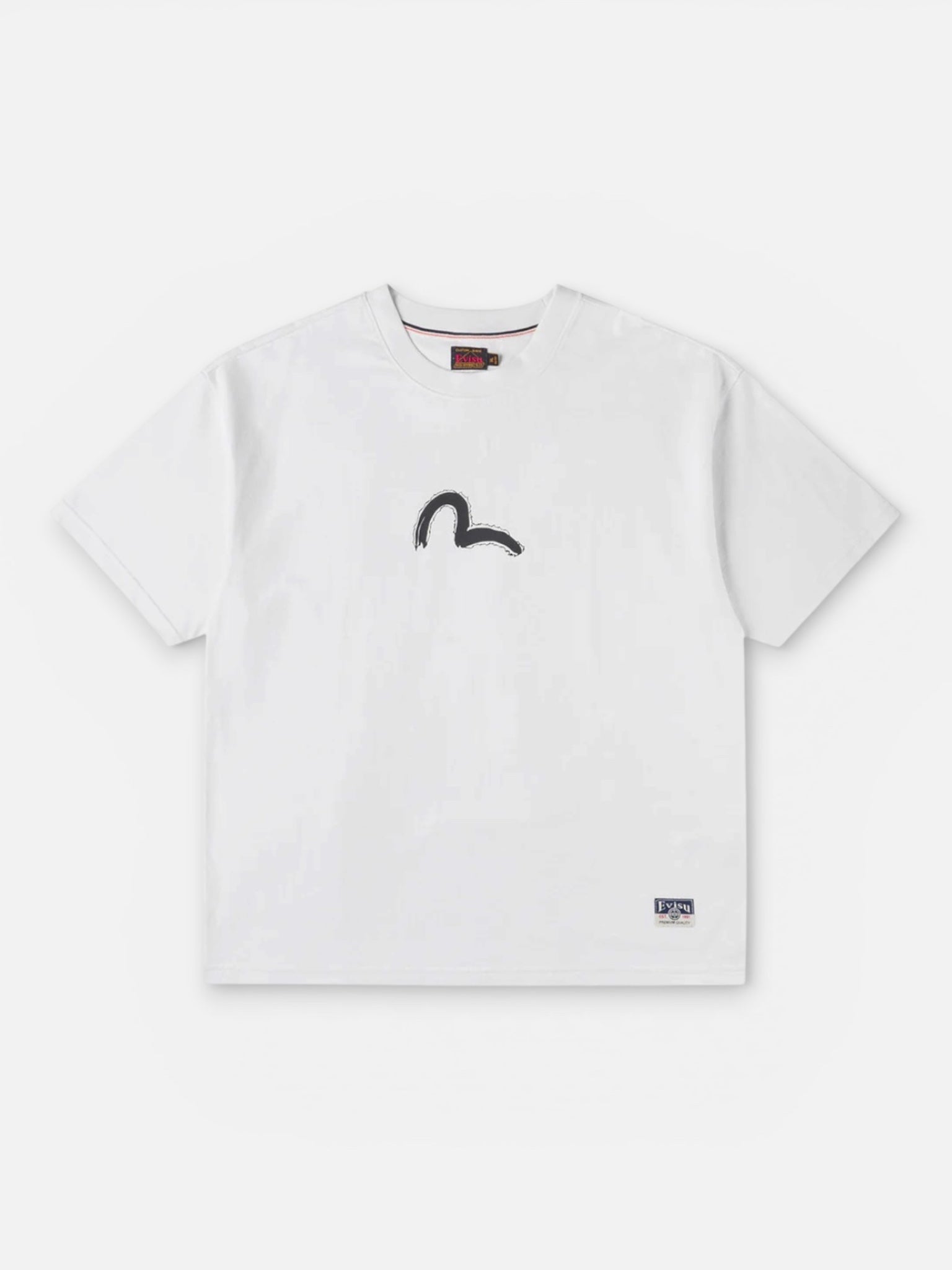 Il design è valorizzato dalla stampa Daicock effetto hand brush, che richiama l’estetica artistica e artigianale tipica di Evisu. La tonalità ecru dona luminosità e un tocco naturale al capo, esaltando la grafica e rendendolo perfetto per outfit streetwear e contemporanei.