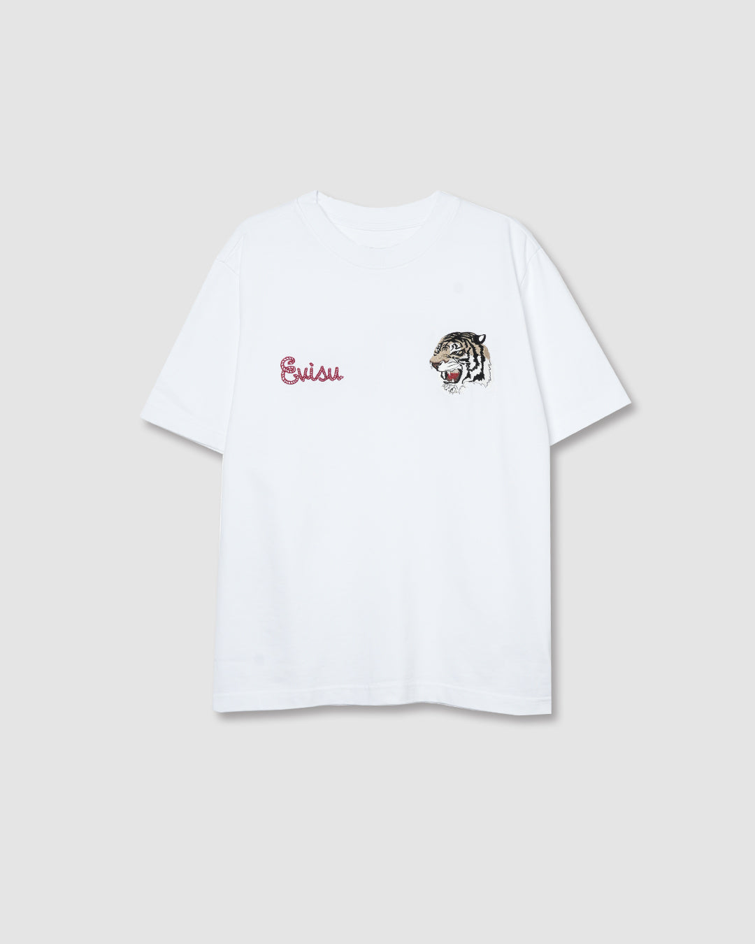 La Tiger Seagull S/S Tee di Evisu in versione bianca è un’esplosione di stile che unisce tradizione giapponese e streetwear contemporaneo. Realizzata in 100% cotone di alta qualità, questa t-shirt a maniche corte si distingue per la grafica sul retro, che ritrae una tigre in stile orientale intrecciata al leggendario logo Seagull del brand, creando un visual d’impatto e simbolico. Il logo EVISU sul petto mantiene un’estetica pulita sul fronte, mentre il fondo bianco mette in risalto i dettagli grafici con forza e precisione. Un capo perfetto per chi vuole esprimere personalità e cultura con un solo look.