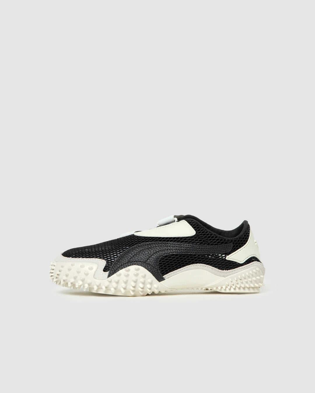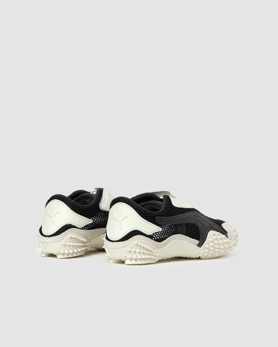 Le Puma Mostro Mesh riprendono un’icona del design anni 2000, reinterpretata in chiave contemporanea. Questo modello si distingue per la sua silhouette futuristica e il profilo basso, caratterizzato da una tomaia in mesh traspirante che assicura leggerezza e comfort. I dettagli in materiale sintetico aggiungono struttura e contrasto, mentre il caratteristico sistema di chiusura con strap e l’inconfondibile suola dentellata richiamano il DNA sportivo e sperimentale del brand. La colorway Vapor Gray/Black combina tonalità neutre e accenti scuri per un look versatile e deciso.