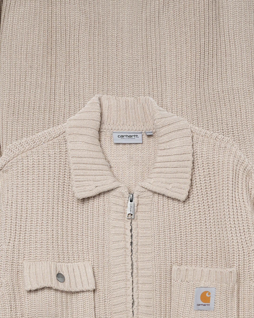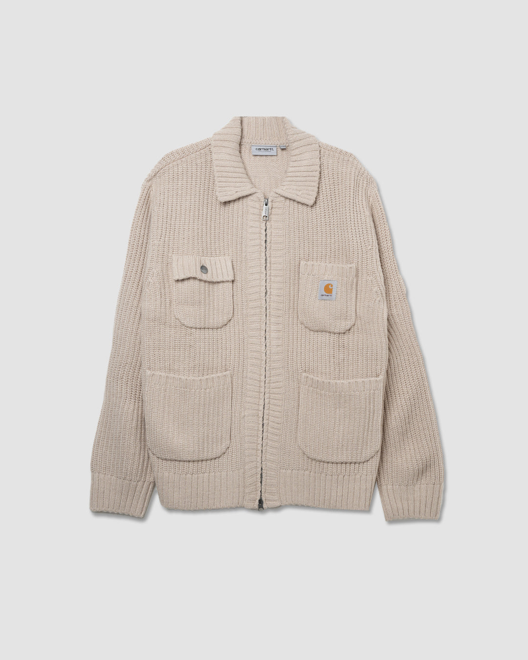 La Chore Knit Jacket di Carhartt WIP incarna l’estetica workwear reinterpretata in chiave contemporanea, unendo la tradizione funzionale del brand a un design pulito ed essenziale. Realizzata in maglia di cotone pesante, questa giacca offre una texture morbida ma resistente, ideale per affrontare le stagioni di transizione con stile. La colorazione Fleur De Sel, una raffinata tonalità neutra, dona al capo un’eleganza sobria e versatile, perfetta per completare outfit casual o più ricercati. Il colletto a costine, la chiusura con bottoni tono su tono e le tasche applicate sul davanti valorizzano la silhouette ispirata alle giacche da lavoro, mentre l’etichetta con logo Carhartt WIP sul petto firma il capo con discrezione. Pensata per chi cerca un equilibrio tra funzionalità e stile minimalista, questa giacca è una scelta ideale per il quotidiano urbano.