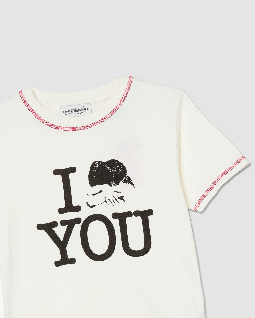 La t-shirt Love You Tender di Carne Bollente unisce ironia e stile in un capo semplice ma di carattere. Realizzata in morbido cotone biologico 100%, questa t-shirt unisex presenta una grafica ricamata sul davanti che esprime dolcezza e originalità, tipiche del linguaggio provocatorio e creativo del brand.