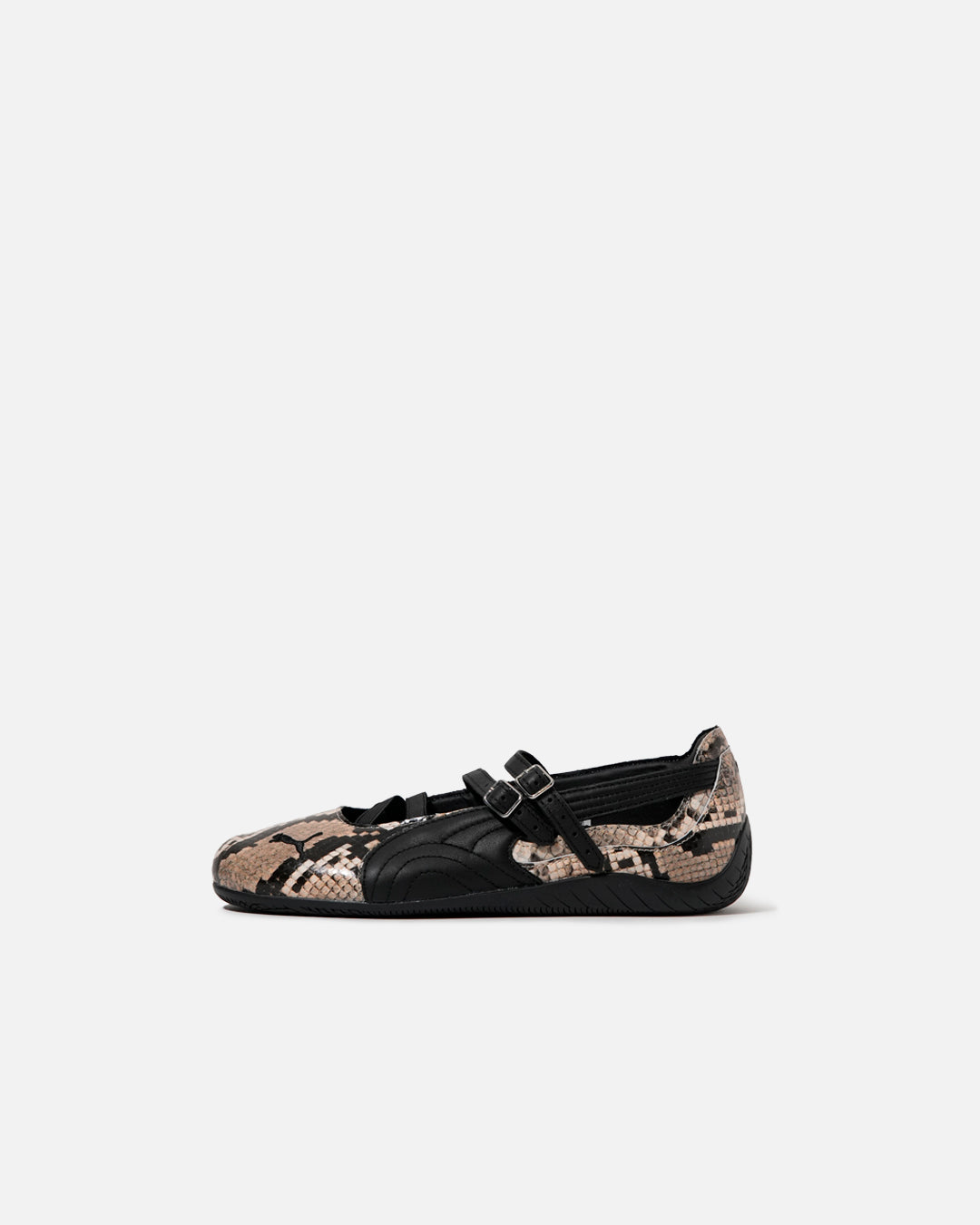 Le Puma Speedcat Ballet Snake Black-Vapor Gray firmate Puma reinterpretano l’iconica silhouette Speedcat con un’estetica audace e contemporanea. Questa versione si distingue per la finitura effetto snake sulla tomaia, che aggiunge carattere e texture al design essenziale ispirato al mondo motorsport.