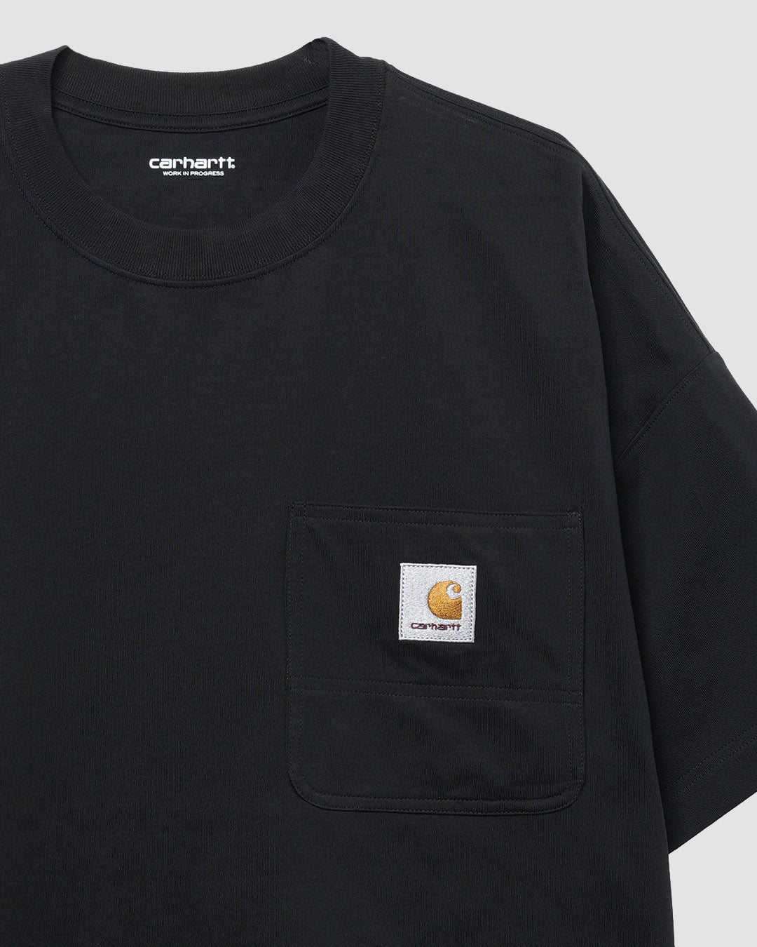 Il taschino applicato sul petto è valorizzato dall’iconica etichetta con logo Carhartt WIP, un dettaglio che richiama l’heritage workwear del brand. Il girocollo a costine e le cuciture rinforzate garantiscono una vestibilità comoda e una lunga durata.