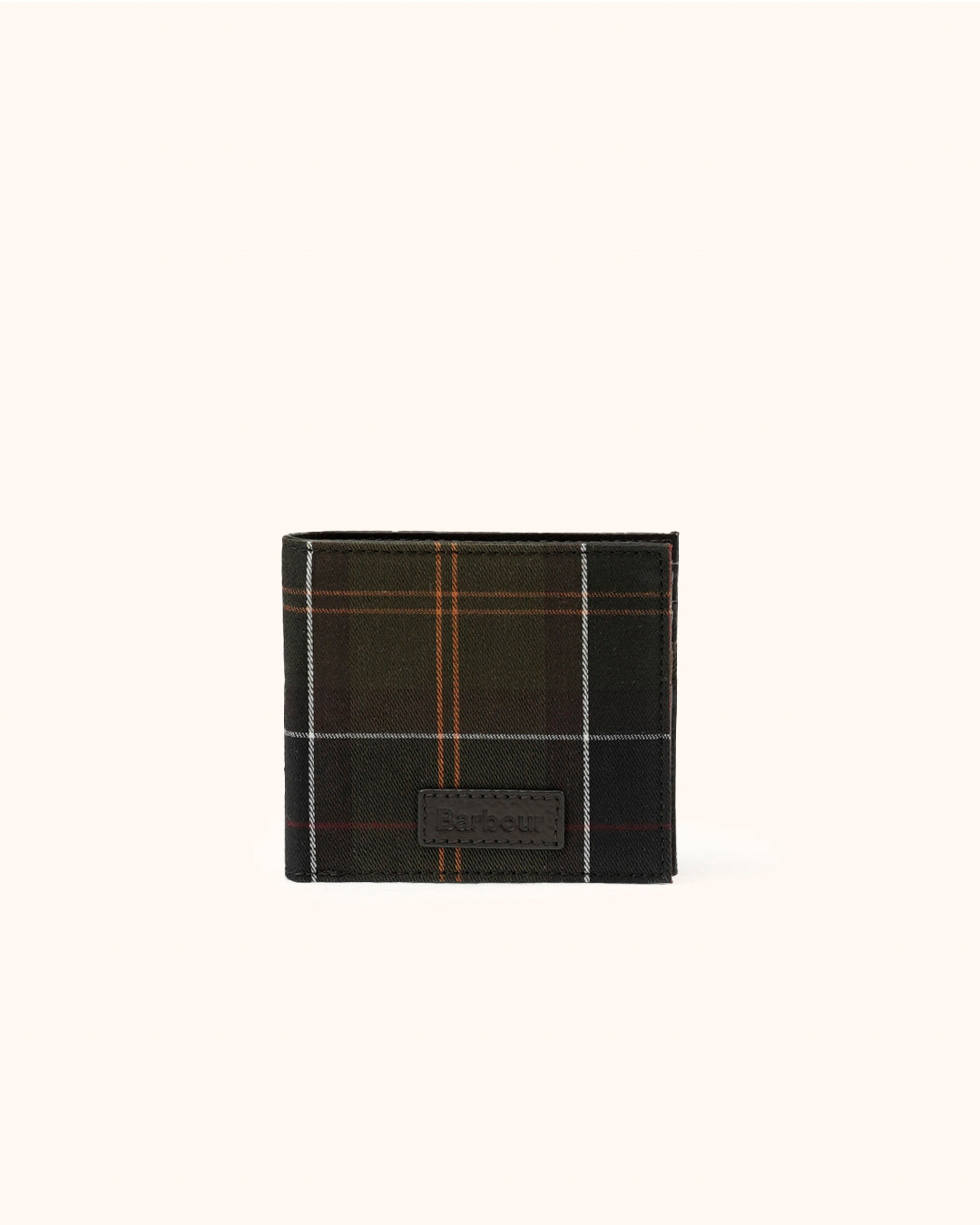 Un'iconicoe intramontabile portafoglio di Barbour, con il suo distintivo motivo a quadri Barbour sulla superficie esterna, rivela all'interno una sezione in pelle fornita di pratiche fessure per le carte. Questo portafoglio è impreziosito da un distintivo Barbour in rilievo sul lato anteriore esterno e da un logo impresso in lamina d'oro all'interno.